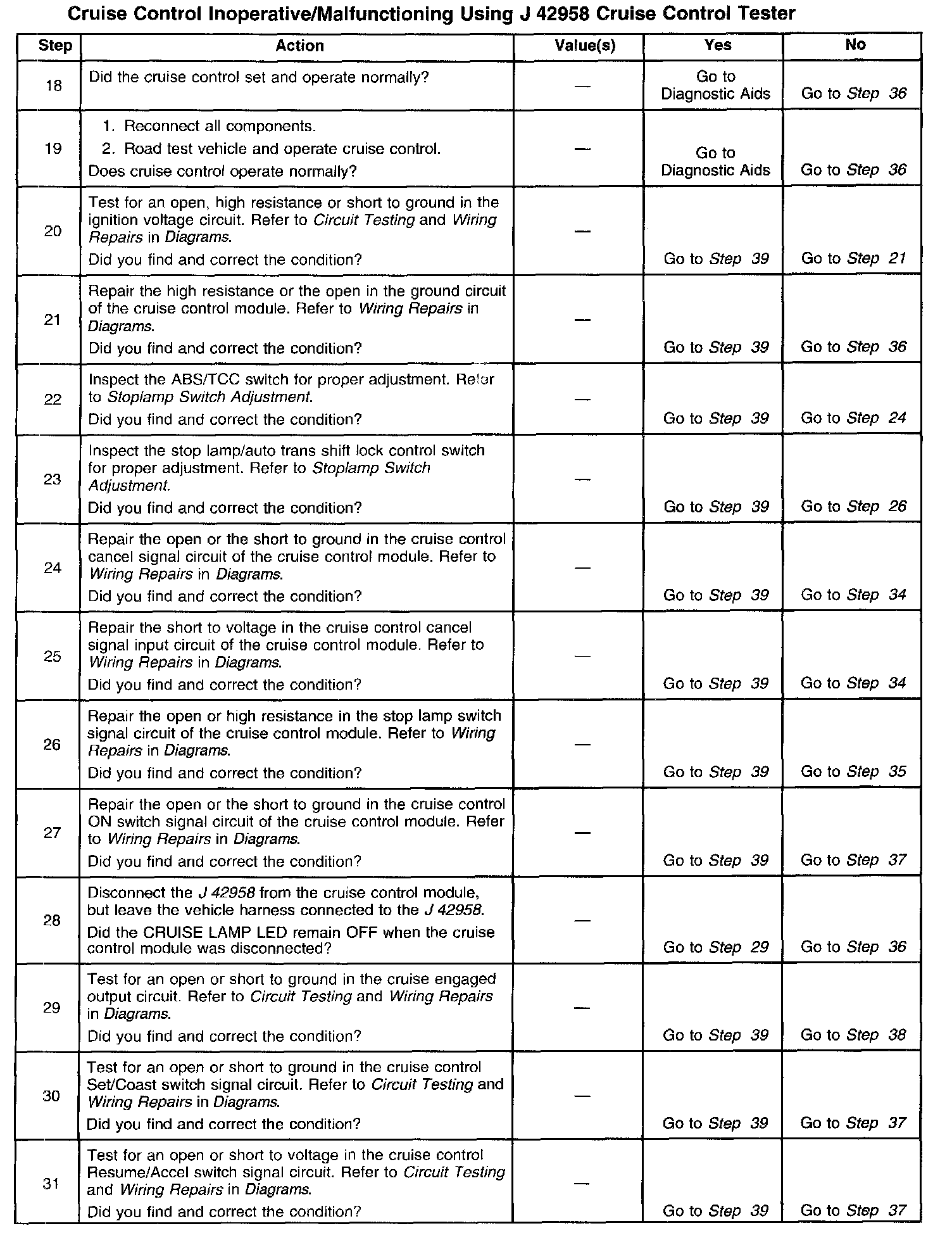 It has been found that when this Tester is used on some vehicles with high resistance or an open in the cruise control module ground circuit, the Tester's LED(s) will light abnormally. For example, the Brake/Clutch and VSS LED(S) will light normally but the Ignition LED will be dim with the ON/OFF switch in the OFF position. However, with the ON/OFF switch in the ON position only the VSS LED will light. If you come upon the above situation, please check the ground circuit prior to going on with your diagnosis.