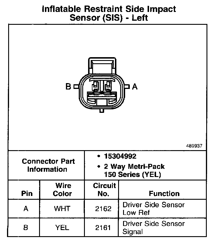 Inflatable Restraint Side Impact Sensor (SIS) - Left: