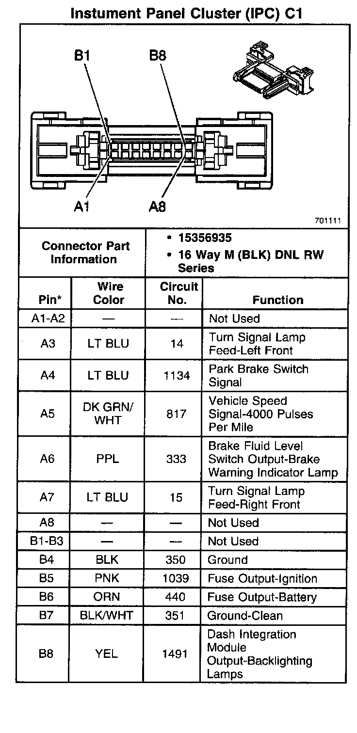 Instrument Panel Cluster (IPC) C1: