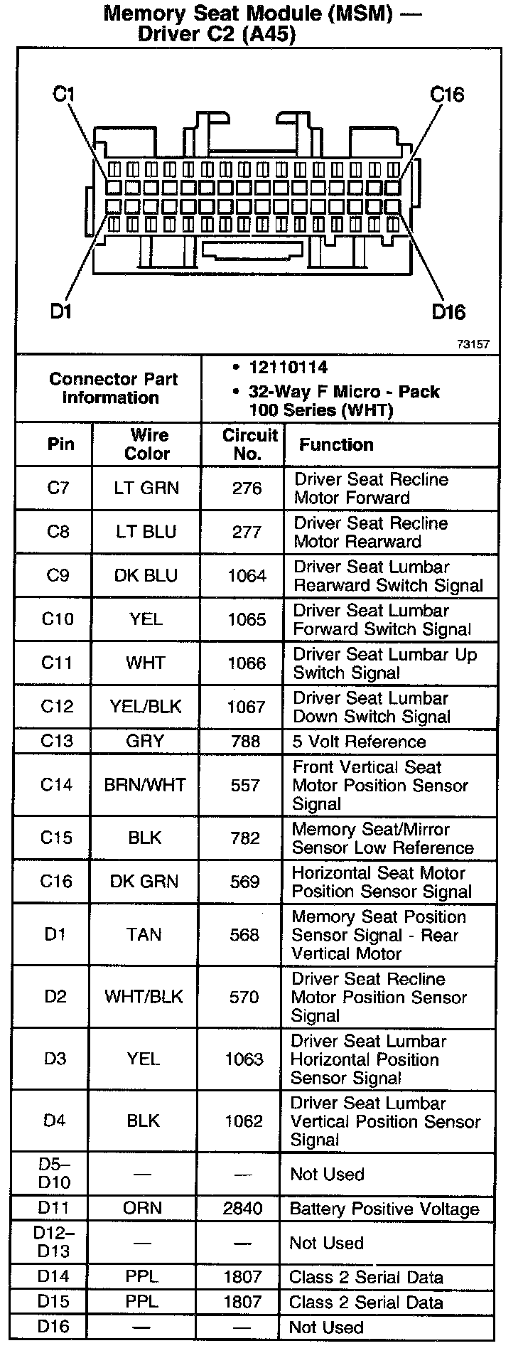 Memory Seat Module (MSM) - Driver C2 (A45) (Part 2 Of 2):