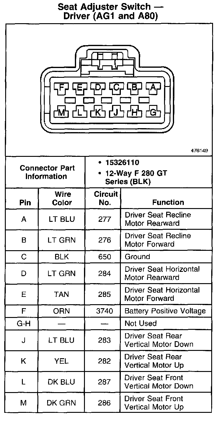 Seat Adjuster Switch - Driver (AG1 And A80):