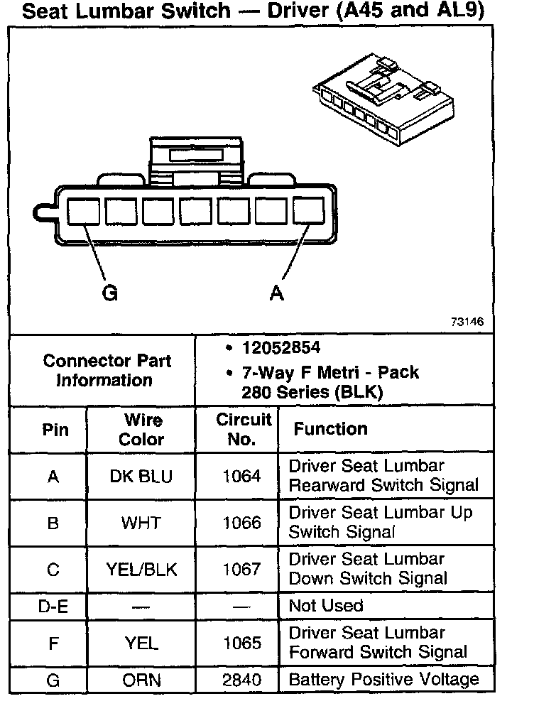 Seat Lumbar Switch - Driver (A45 And AL9):