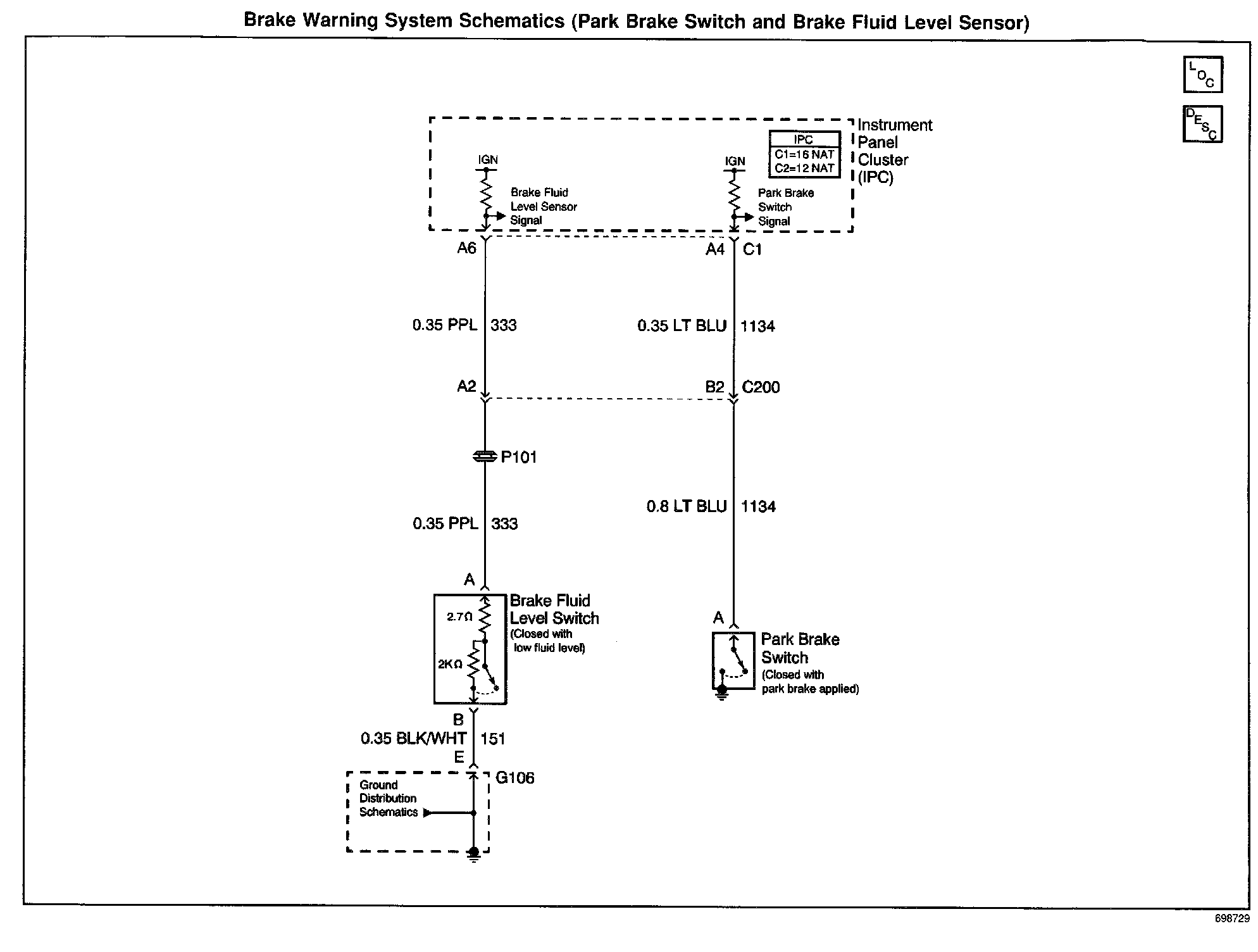 Brake Warning System Schematics: Park Brake Switch And Brake Fluid Level Sensor: