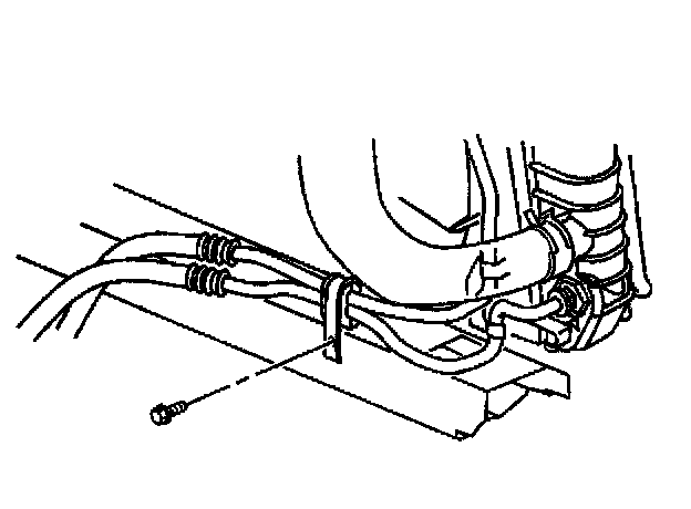 8. Install the transaxle oil cooler pipe bracket bolt to the lower tie bar.