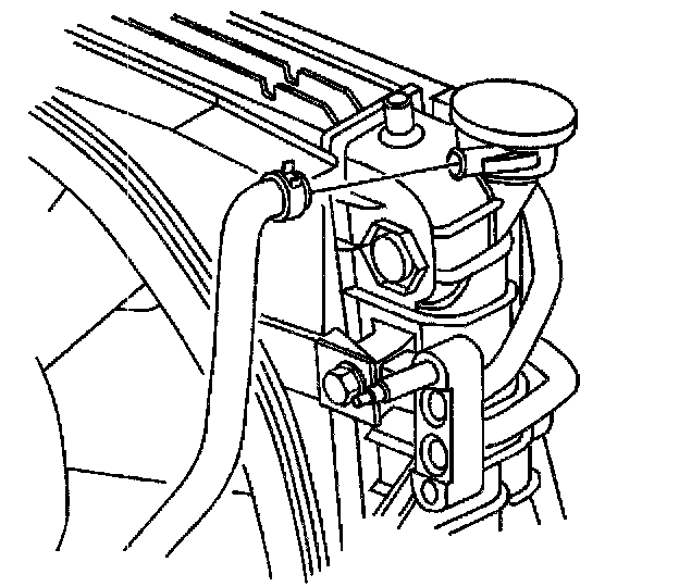 Important: The bolt retaining the condenser to the radiator end tank is a 15 mm (0.6 inch) length and should be the ONLY bolt used upon reinstallation. The use of a longer bolt will damage the radiator end tank.
