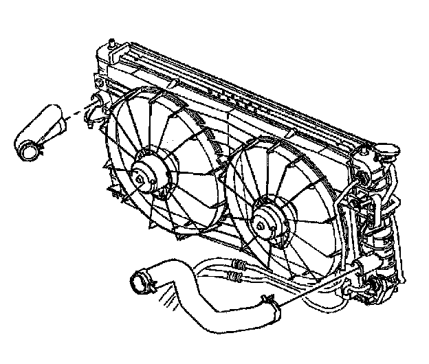 4. Disconnect and plug the coolant overflow hose from the radiator.