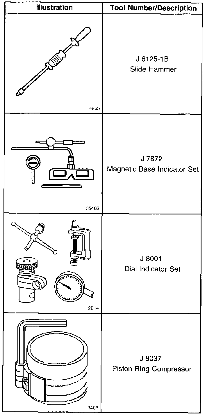 An approved engine repair stand will prevent personal injury or damage to the engine components. The special tools are designed in order to quickly and safely accomplish the operations for which the tools are intended. Using the tools will minimize possible damage to the engine components. Precision measuring tools are required for the inspection of certain critical components. Torque wrenches are needed for the correct assembly of various parts.