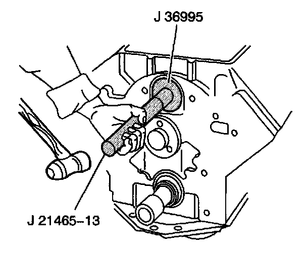 5. Use J 21465-13 and J 36995 to install the balance shaft bearing into the engine block.