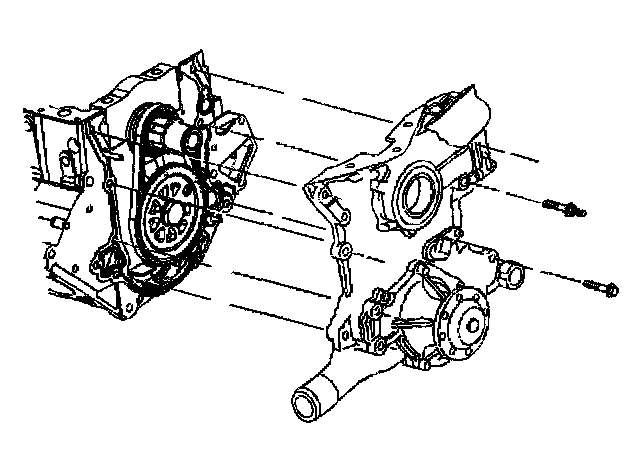 2. Install the engine front cover. Align the cogs on the crankshaft sprocket with the cogs on the oil pump in the engine front cover.