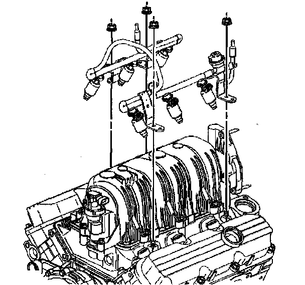6. Remove the fuel injector. rail nuts.