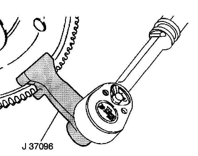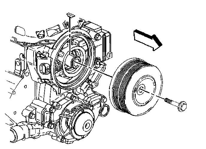 ^ Tighten the crankshaft balancer bolt to 150 Nm (111 ft. lbs.). Use J 36660-A to tighten the crankshaft balancer bolt an additional 76°.