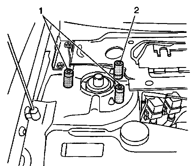 4. Place the strut adapters (J 28467-33A) (1) on top of the four remaining forward strut tower bolts.