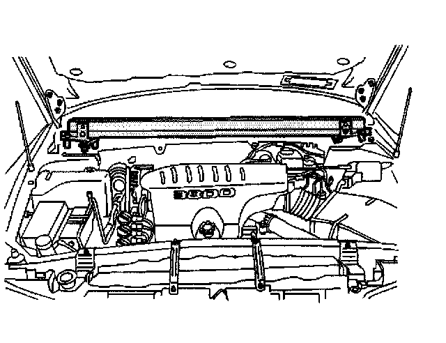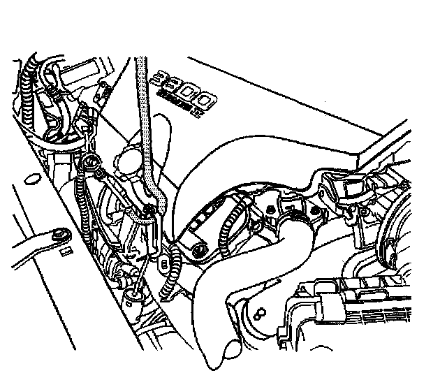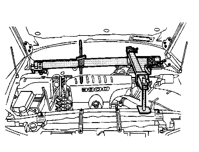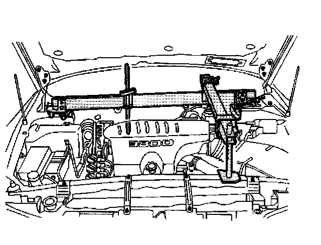19. Install the swivel lift hook (J 28467-8A) through the front engine lift hook bracket. Ensure the hook does not damage the surrounding components.
