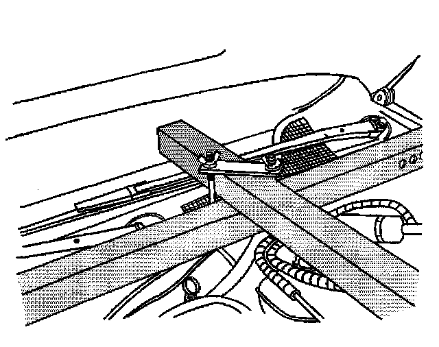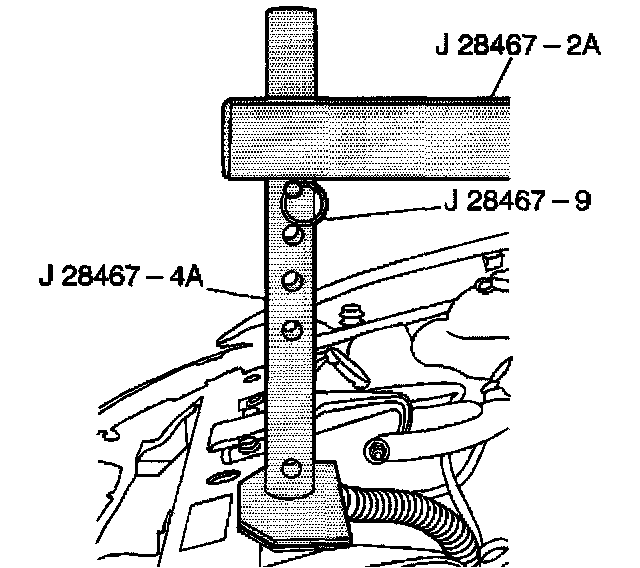 11. Place the rubber padded foot of the front support assembly (J 28467-4A) on the upper tie bar.