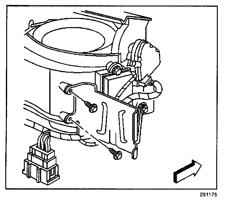 8. Remove the blower motor retaining screws (1).