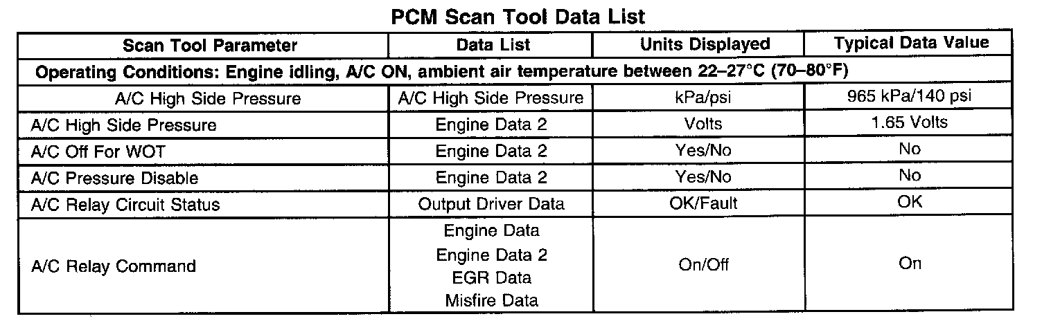 Scan Tool Data List - Powertrain Control Module (PCM)