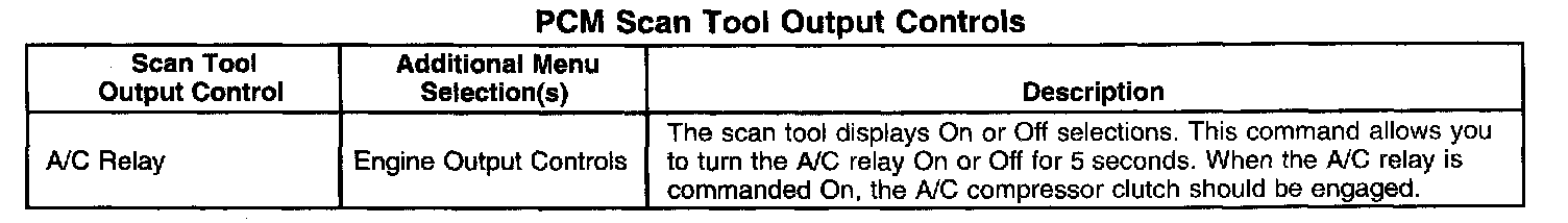 Scan Tool Output Controls - Powertrain Control Module (PCM)