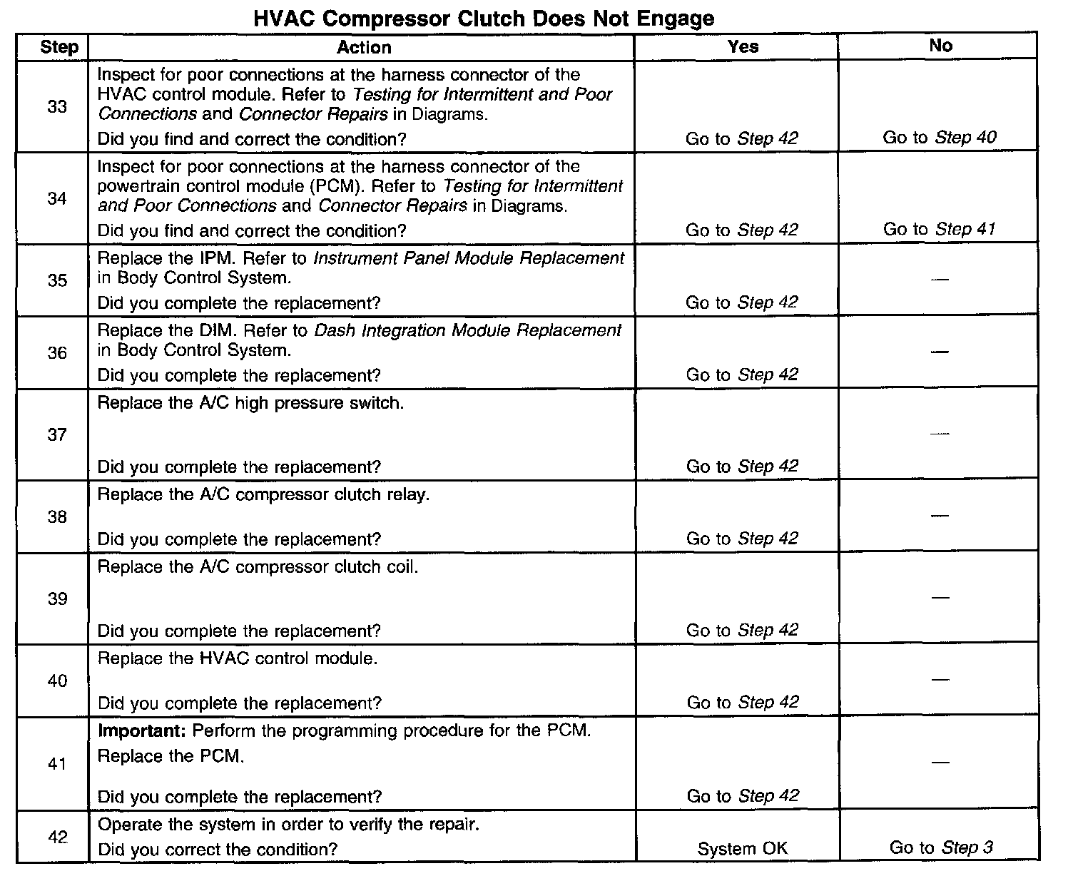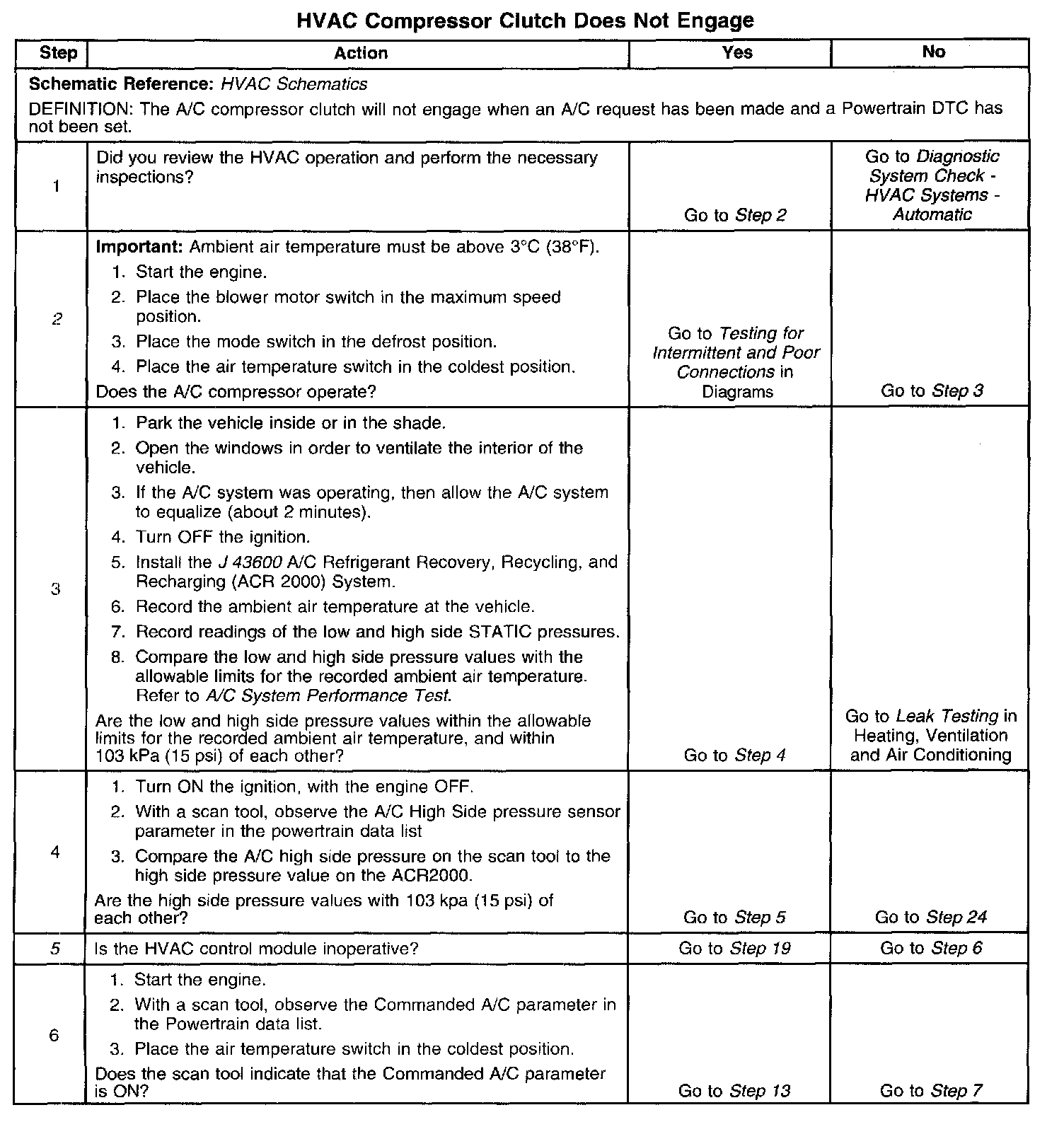 5. The HVAC control assembly is inoperative when the module does not respond to any operator control requests to enable the A/C compressor. The blower motor may still operate independent of the A/C controls.