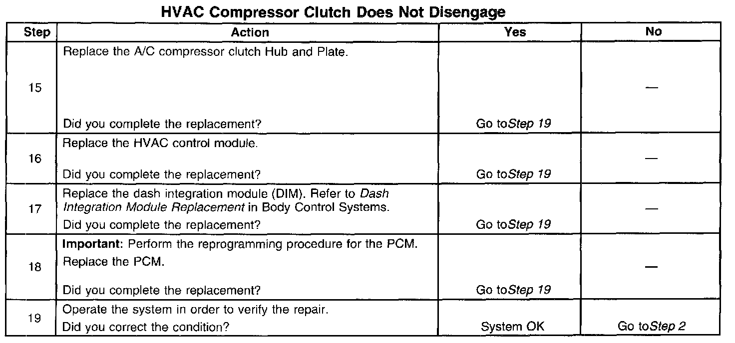 5. The HVAC control assembly is inoperative when the module does not respond to any operator control requests to enable the A/C compressor. The blower motor may still operate independent of the A/C controls.