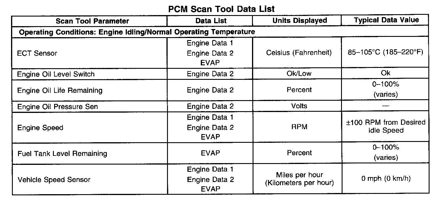 PCM Scan Tool Data List: