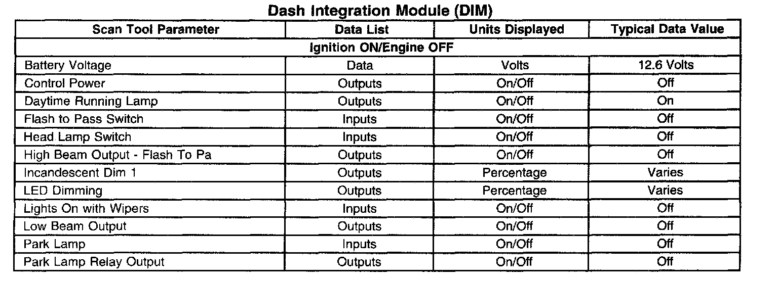 Scan Tool Data List - Dash Integration Module (DIM)