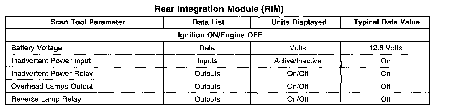 Scan Tool Data List - Rear Integration Module (RIM)