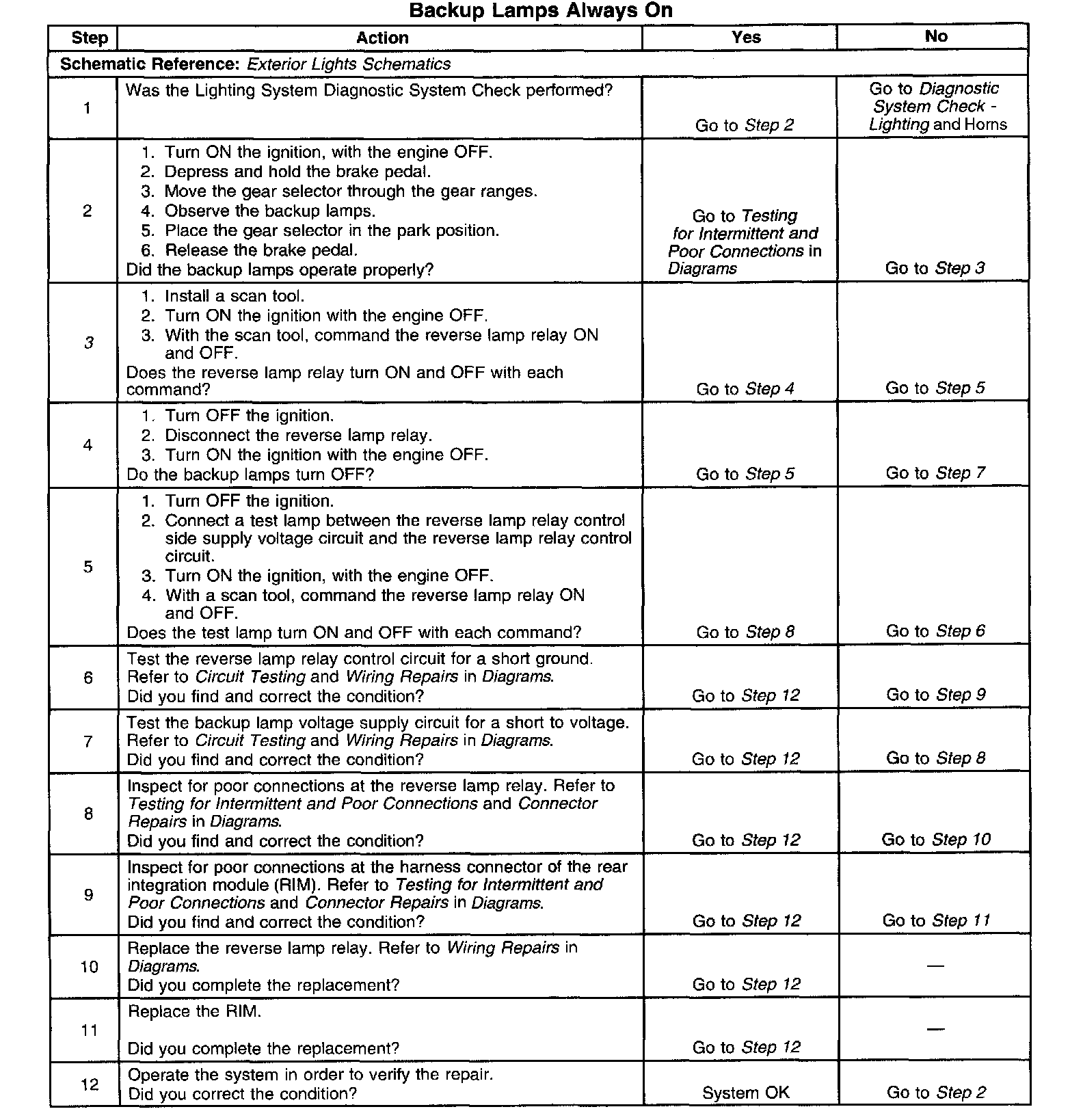 3. Listen for an audible click when the reverse lamp relay operates. Command both the ON and OFF states. Repeat the commands as necessary.