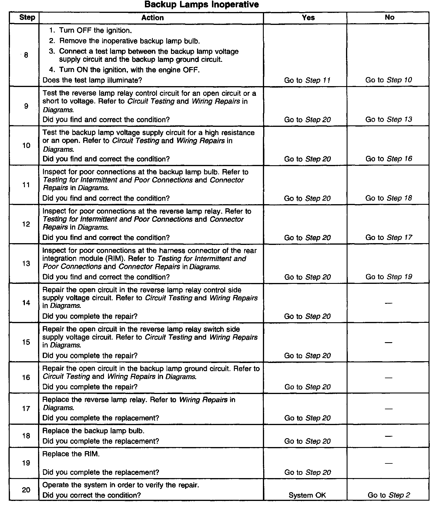 3. Listen for an audible click when the reverse lamp relay operates. Command both the ON and OFF states. Repeat the commands as necessary.