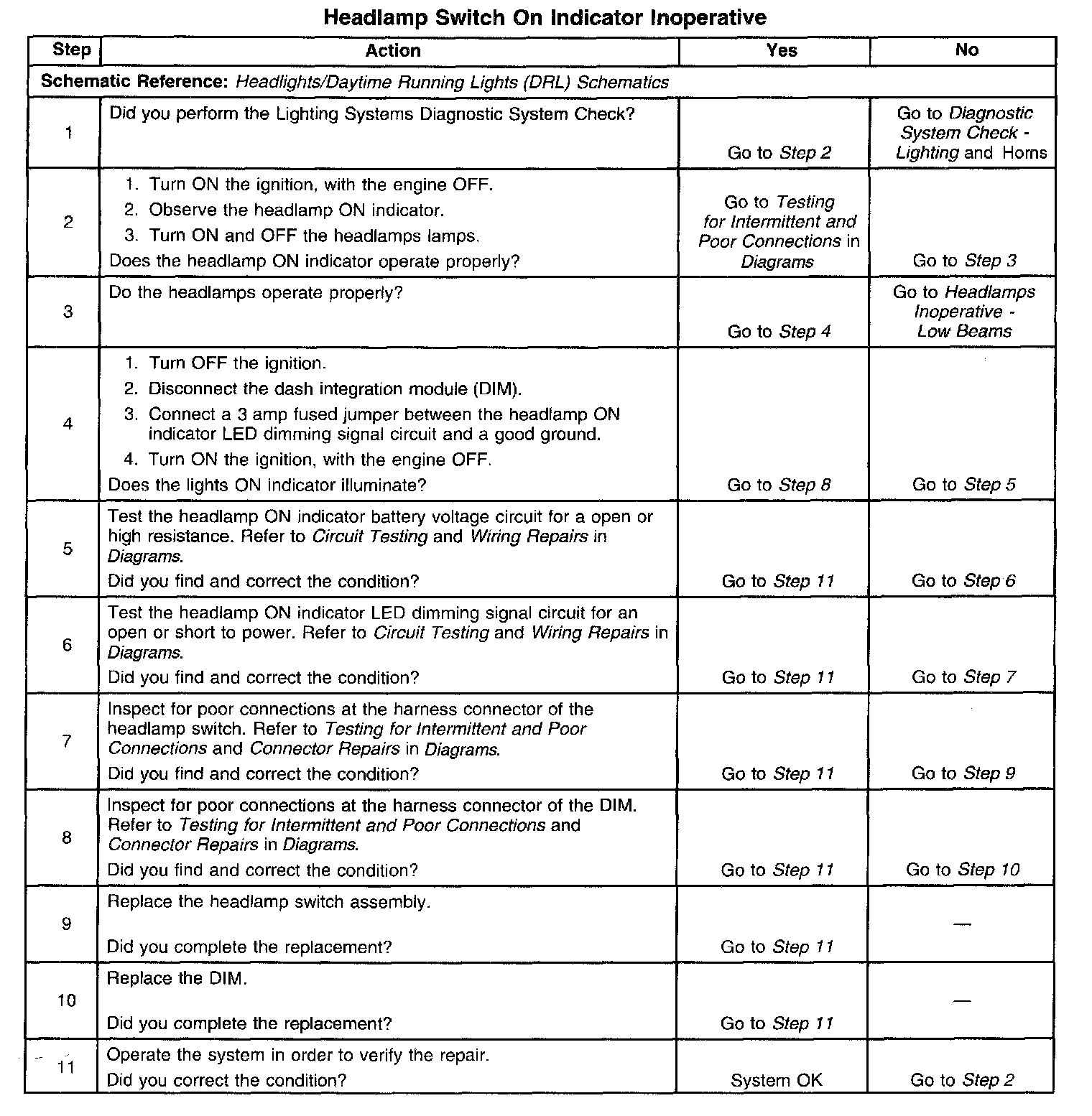 Headlamp Switch On Indicator Inoperative