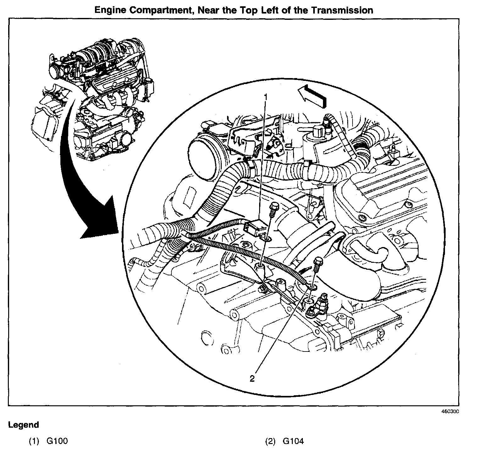Left side of the engine on top of the transmission