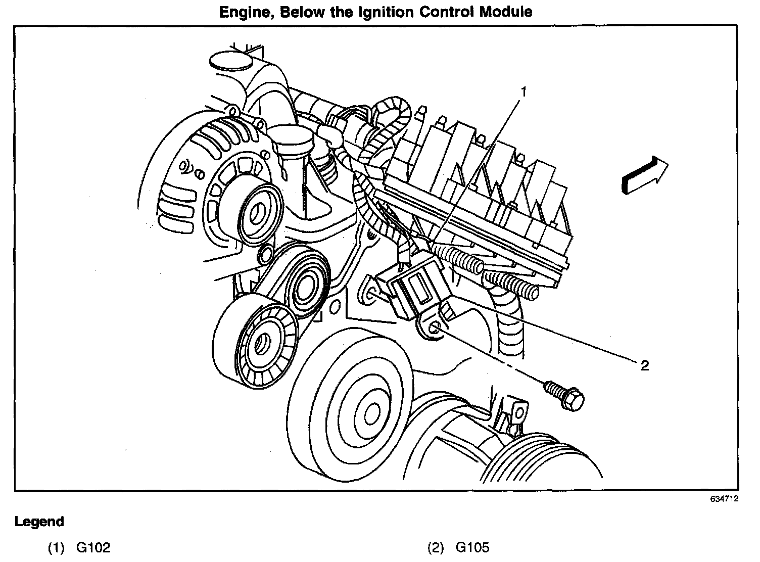 Rear of the engine behind the power steering pump