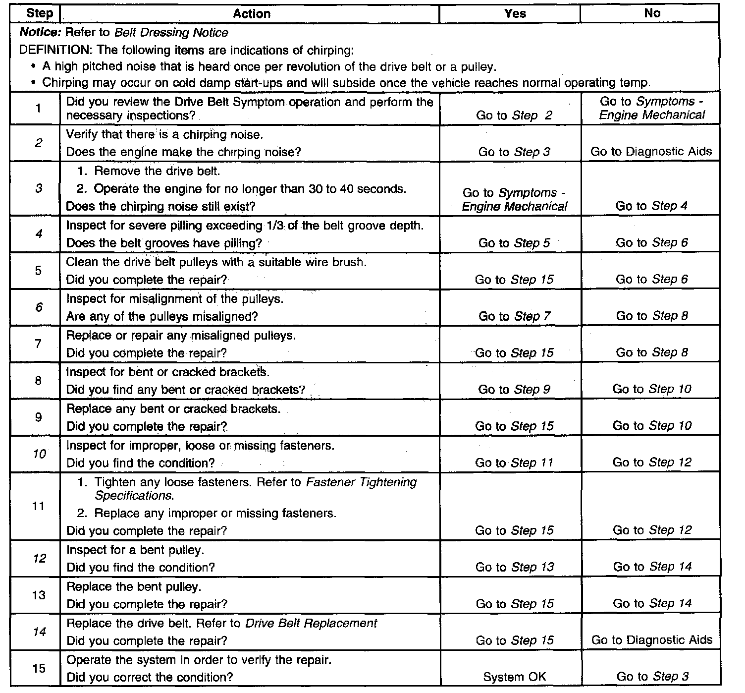 Drive Belt Chirping DiagnosisDiagnostic Aids