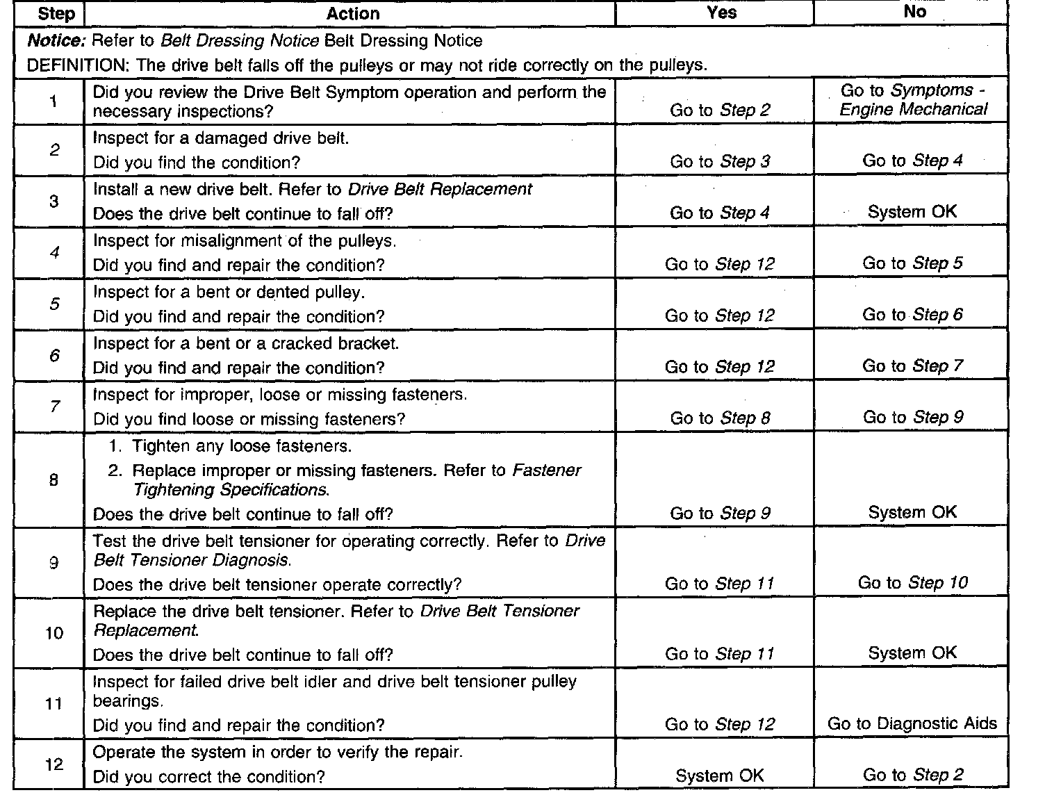 Drive Belt Falls Off DiagnosisDiagnostic Aids