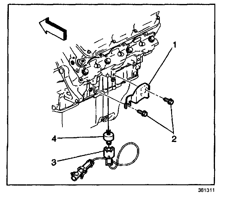 1. Install the knock sensor (2) into the engine block (1).