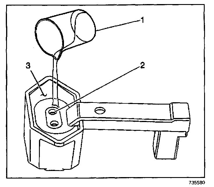 9. Pour the fuel sample from the beaker (1) into the J44175, until the level of the fuel is at the top of each fuel test port (2).