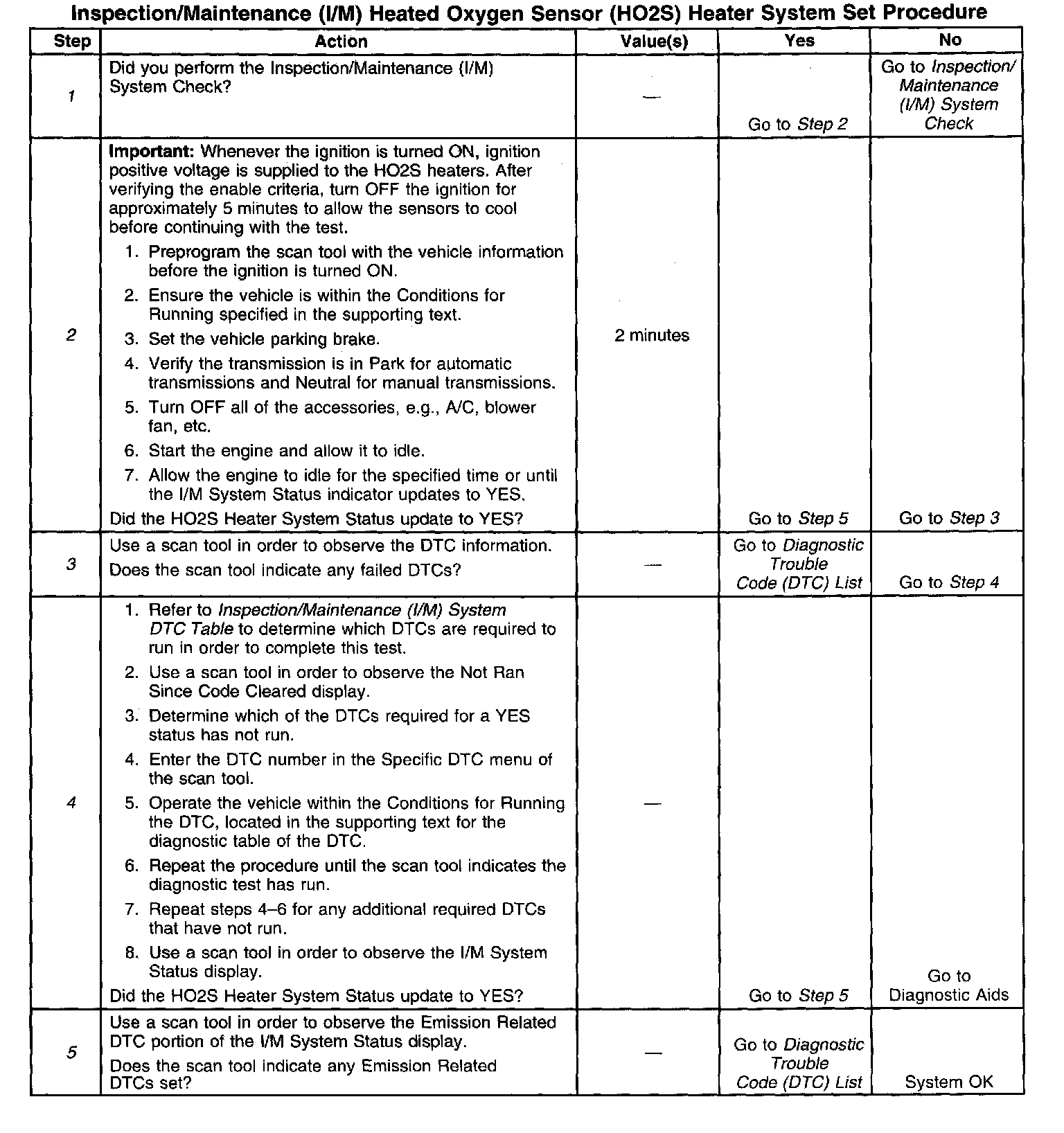 I/M Heated Oxygen Sensor (HO2S) Heater System Set Procedure