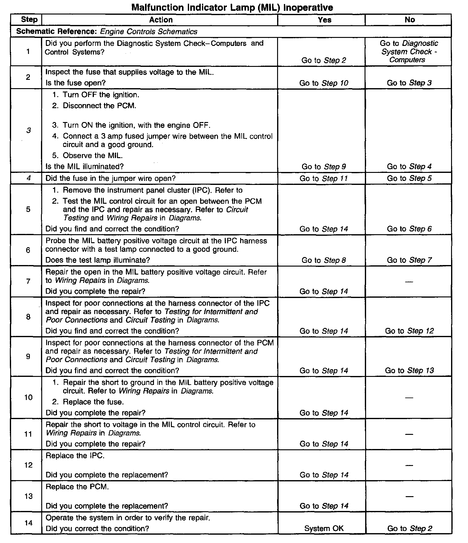 3. This step determines if the condition is with the MIL control circuit or the PCM.