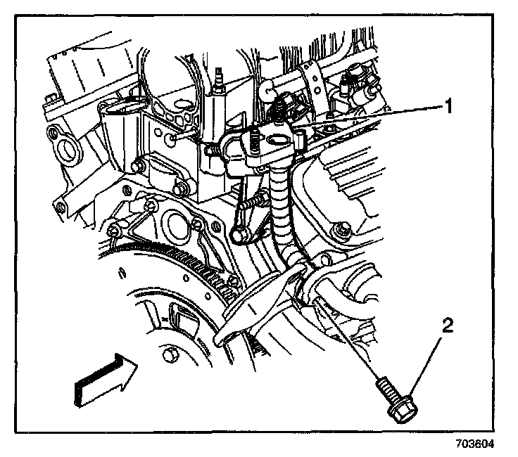 3. Install the EGR valve adapter pipe bolt (2) to the exhaust manifold.