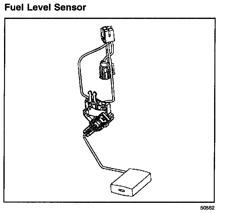 The fuel level sensor consists of a float, a wire float arm, and a ceramic resistor card. The position of the float arm indicates the fuel level. The fuel level sensor contains a variable resistor which changes resistance in correspondence with the amount of fuel in the fuel tank. The PCM sends the fuel level information via the Class 2 circuit to the Instrument Panel (IP) cluster. This information is used for the IP fuel gauge and the low fuel warning indicator, if applicable. The PCM also monitors the fuel level input for various diagnostics.