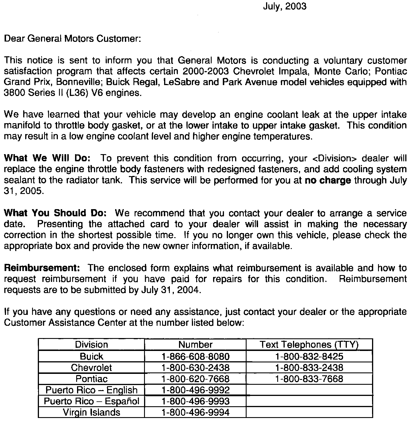 Campaign - Engine Coolant Leak