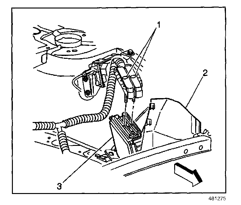 2. Carefully reinstall the PCM (3) and harness into the PCM housing (2).