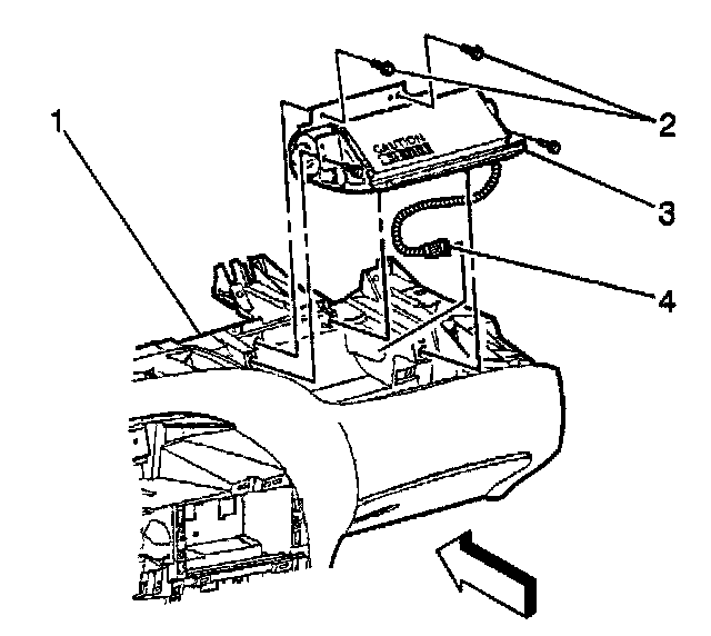 1. When installing the inflatable restraint IP module (3) care must be taken not to damage inflatable restraint IP module pigtail (4).