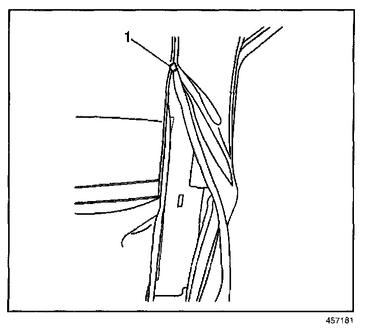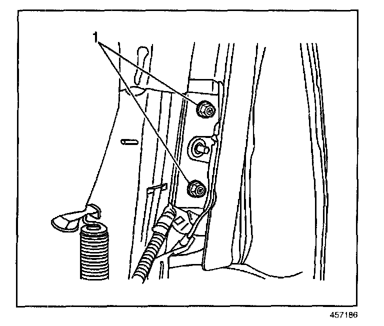 7. Remove the two fasteners (1) from the inflatable restraint side impact inflator module. (Top and bottom fasteners only.)