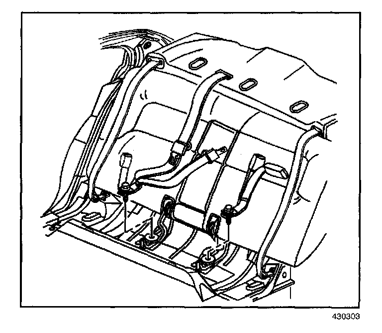 Tighten the rear seat center belt lower fastener to 41 N.m (30 lb ft).