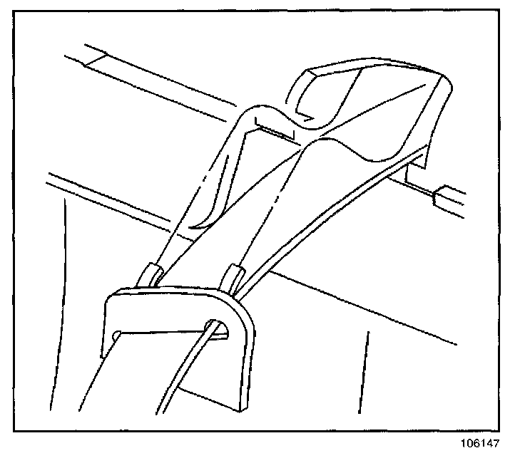 1. Install the rear seat center retractor on to the cross car beam. Ensure the retainer tab engages the notch in the beam.