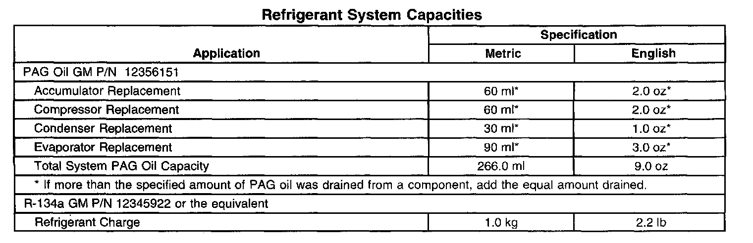 Refrigerant System Capacities: