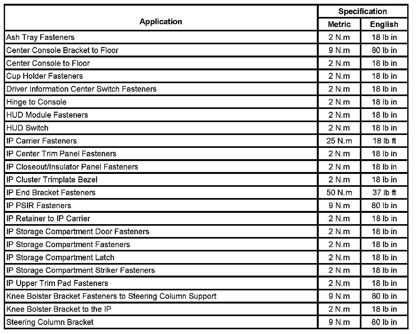 Fastener Tightening Specifications