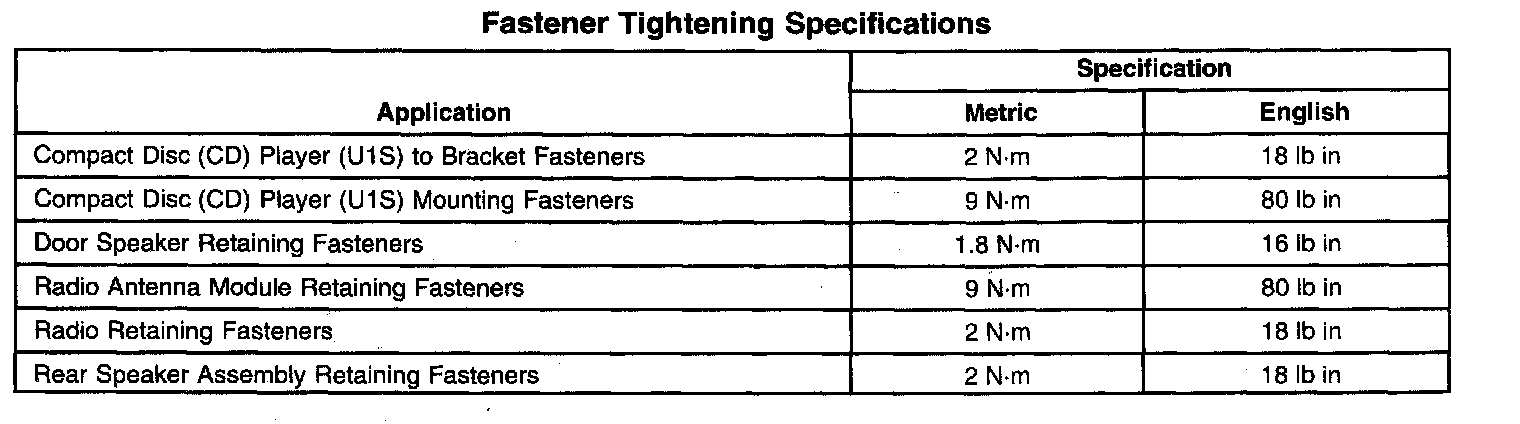 Fastener Tightening Specifications: