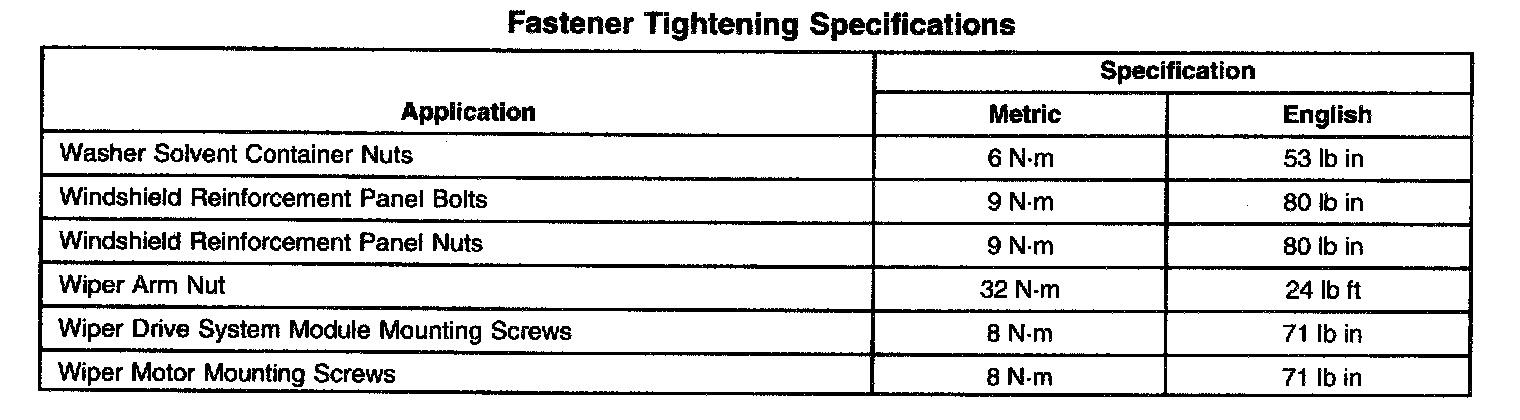 Fastener Tightening Specifications: