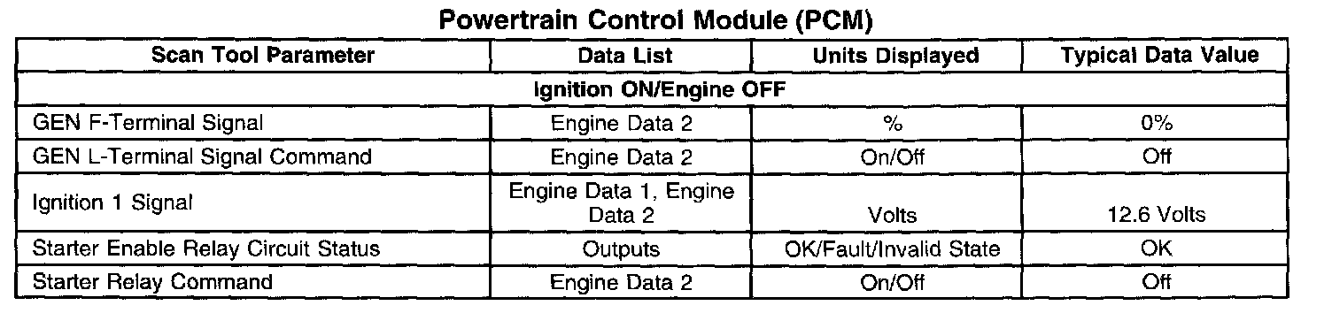 Scan Tool Data List - Powertrain Control Module (PCM)